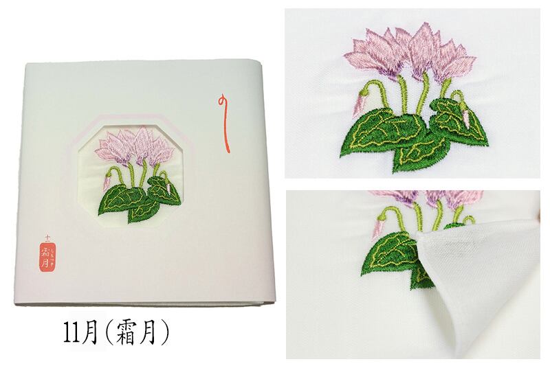 誕生月12ケ月それぞれの柄の刺繍が施されたガーゼ素材のハンカチです。吸収性の良い素材なので実用性が高く、隅に施されたワンポイントの刺繍はオシャレで高級感があります。誕生月に合わされるか、お好きな柄にされるか、ご自由にお選び下さい。