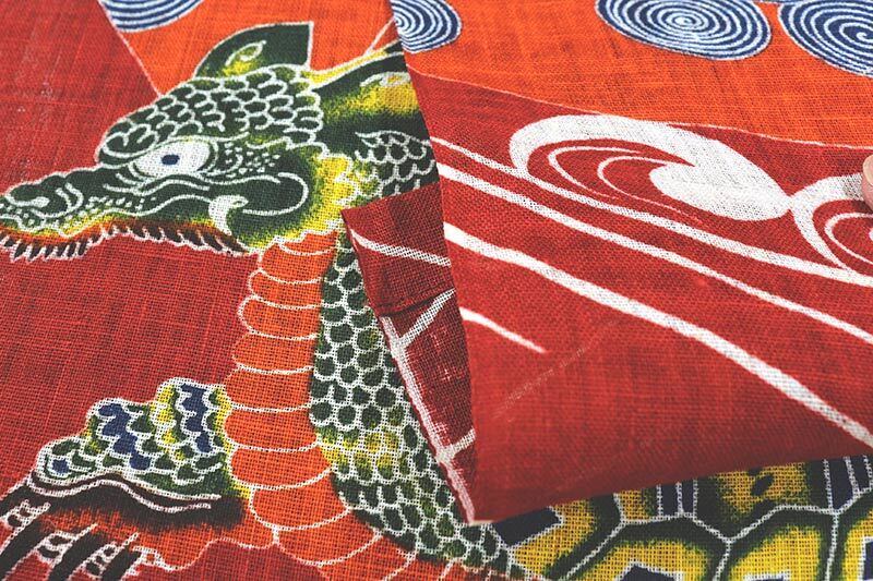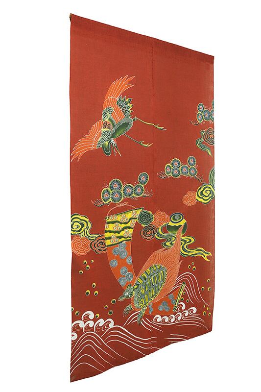 鶴はその優雅な姿から「千年の命」、亀はその長い寿命と堅実な歩みから「万年の命」を象徴し、共に幸福や繁栄を呼び寄せるシンボルとして愛されています。伝統的な美しさとともに長寿や繁栄を願い優雅で穏やかな雰囲気を演出します。熟練した職人の手で一品一品型染めで染め上げられました。