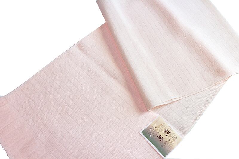 京都丹後の絹100%夏物帯揚げです。水撚り八丁撚糸を使用した絹地(きんち)でたてシボで絽の生地を無地染めしてあります。絹独特の光沢があり、大変しなやかでドレープ性と弾力性がある生地です。色は淡いピンクの無地染めで、大変上品な印象です。コーディネイトできものと帯の邪魔をしない非常にやさしい色目ですのでフォーマルでもカジュアルでもご使用いただけます。