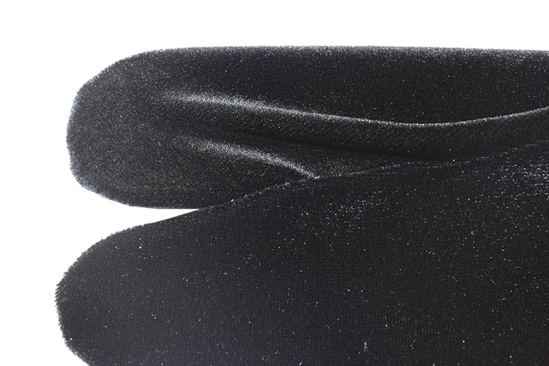 撫松庵のおしゃれなベロア足袋です。ソックスタイプのフリーサイズになっており伸びる素材ですので簡単に履けて便利です。ベロア生地の無地で光沢と高級感があり、小紋や紬などの普段着に足元のおしゃれを楽しんでいただけます。