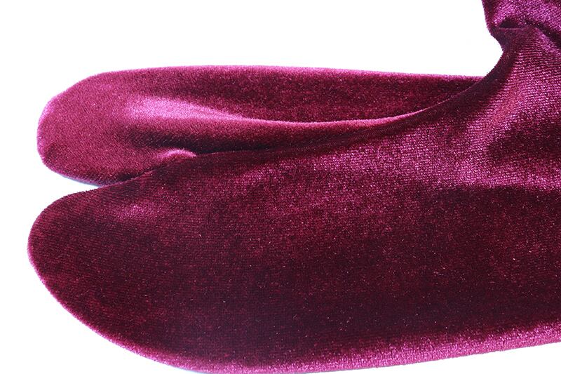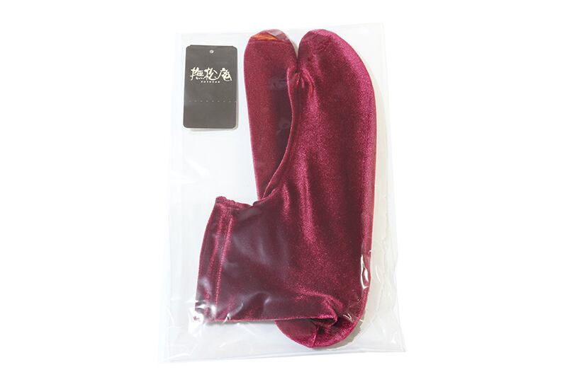 撫松庵のおしゃれなベロア足袋です。ソックスタイプのフリーサイズになっており伸びる素材ですので簡単に履けて便利です。ベロア生地の無地で光沢と高級感があり、小紋や紬などの普段着に足元のおしゃれを楽しんでいただけます。
