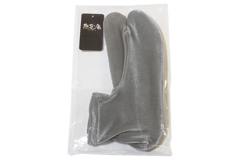 撫松庵のおしゃれなベロア足袋です。ソックスタイプのフリーサイズになっており伸びる素材ですので簡単に履けて便利です。ベロア生地の無地で光沢と高級感があり、小紋や紬などの普段着に足元のおしゃれを楽しんでいただけます。