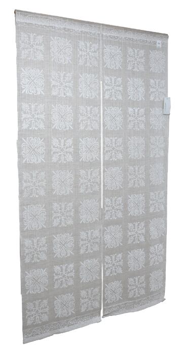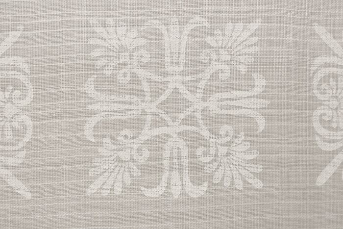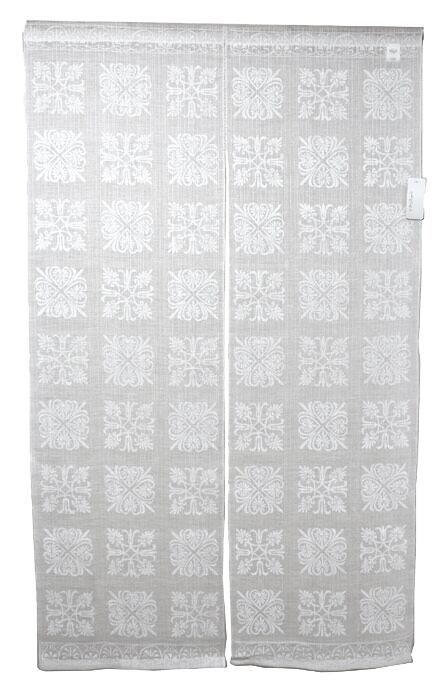 伝統的で華やかな更紗の図柄を集め、白で染色した上品でモダンな麻のれんです。透け感のある麻生地で室内用としても使いやすく、オールシーズンご使用いただけます。白更紗の文様は距離によって表情を変えるのも魅力です。近くで見ると繊細さが際立ち、離れて見ると模様がひとつのリズムとなって空間を軽やかに包み込みます。