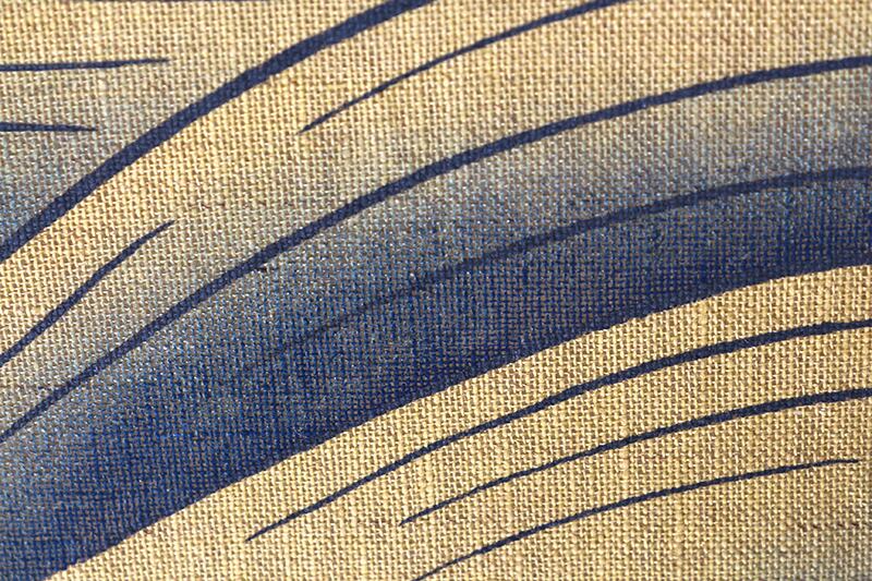 繊細な手仕事で波のうねりやさざ波の陰影を奥行ある色使いで表現しました。波のうねりは力強さと永遠の象徴として空間に絶え間ない活力をもたらします。職人の手仕事が光る風合い豊かなのれんは毎日の暮らしにさりげない彩りを添えてくれるでしょう。
