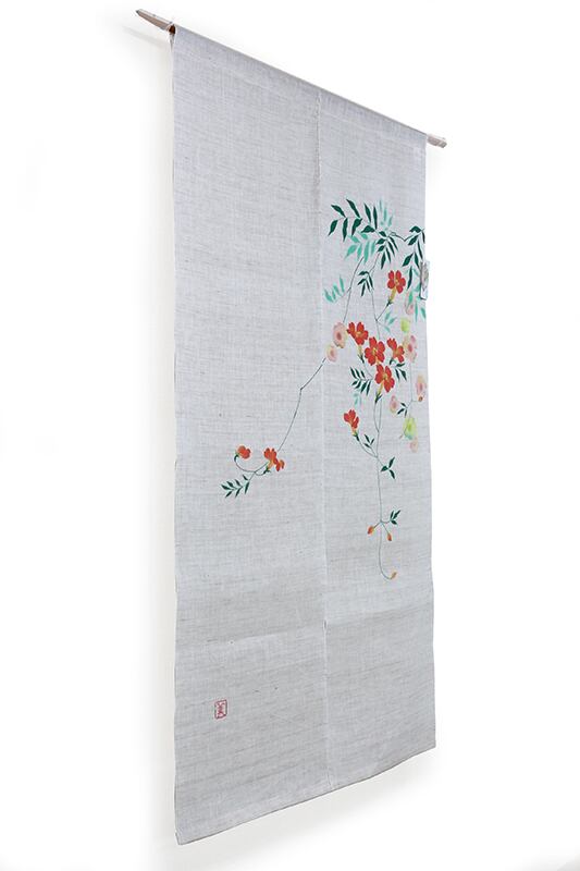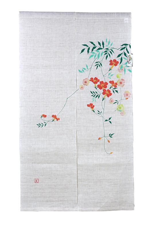 「凌」は上に出る、「霄」は遥かな空という意味を持つことから凌霄花は「天に昇る花」という意味を持ちます。そんな上に上にと向かい咲く花の様子から凌霄花は向上心の意味を持つ大変めでたいものとして親しまれてきました。手描きならではの細やかな表現技法を活かして色を柔らかく馴染ませた風合いが特徴の一枚です。