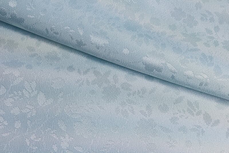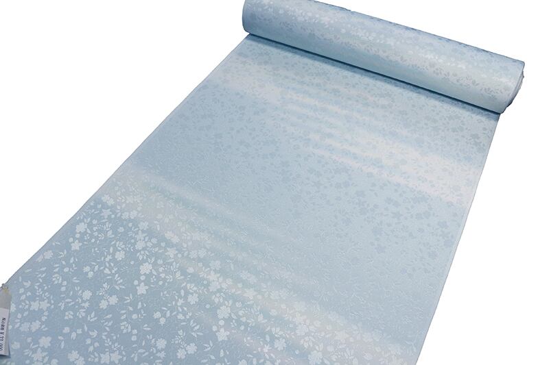 小花の地模様の生地で上品な淡い水色の地色に手ぼかし染めを施した洗える長襦袢です。小花の地模様は柄部分が光沢があり、浮き立ちます。東レシルック独特の絹のようしなやかな風合いで霞ぼかしは高級感を引き立てます。フォーマルからしゃれものまで幅広く合わせていただけます。お手入れは簡単でご家庭の洗濯機で丸洗いができます。メーカー希望価格¥33,000。