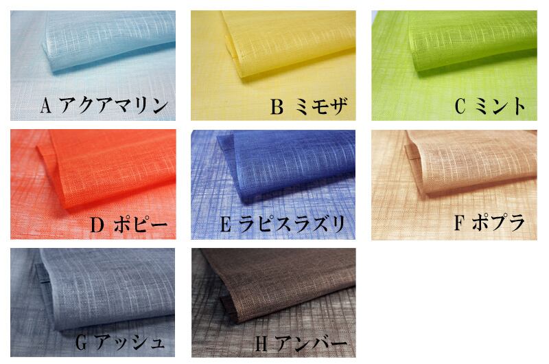 インテリアとして合わせやすいシンプルな無地染めのれんです。ほどよい透け感の麻生地で季節にかかわらず通年お使いいただけます。8色のラインナップからお好きな色をお選びください。