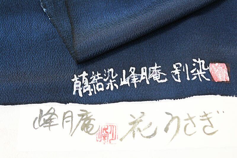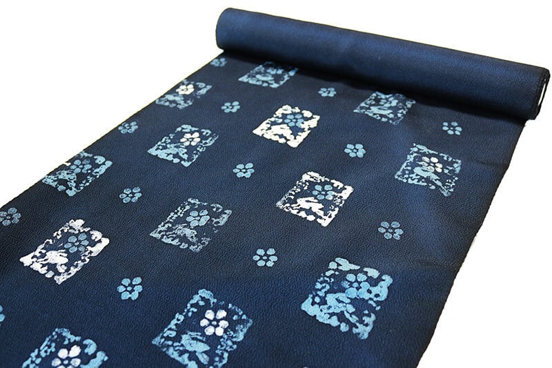 名古屋帯 ろうけつ染め 花兎 紺 染帯 正絹 九寸帯 未仕立