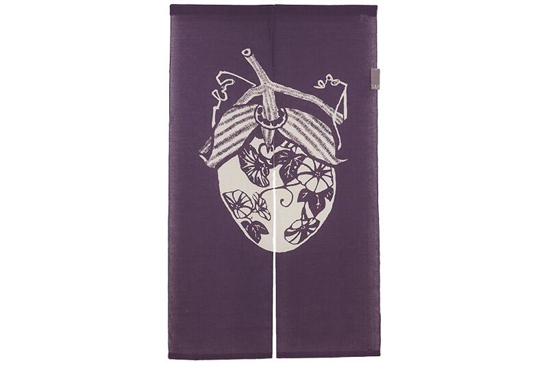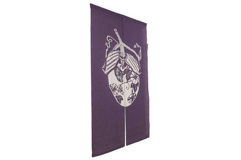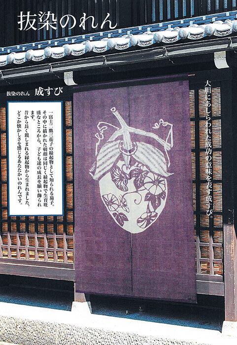 一富士二鷹三茄子の縁起物として知られる茄子。その中に描かれた朝顔は同じく縁起物で育成旺盛なところから、子供たちの成長を願い飾られます。昔から長く親しまれる縁起物から生まれました。どこか懐かしさを感じるあたたかいのれんです。無地染めしてから柄部分の色を抜く抜染という技法で染め上げられました。